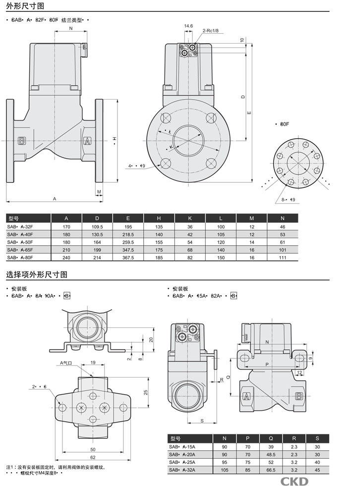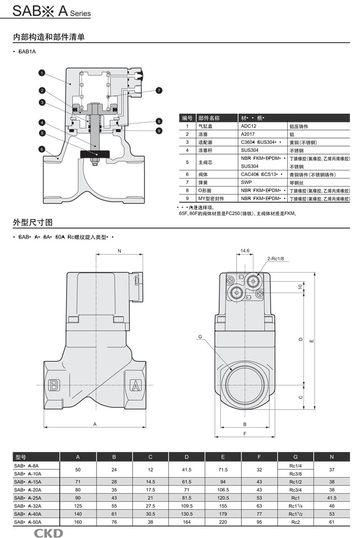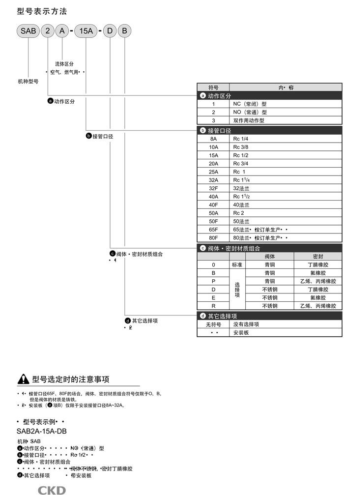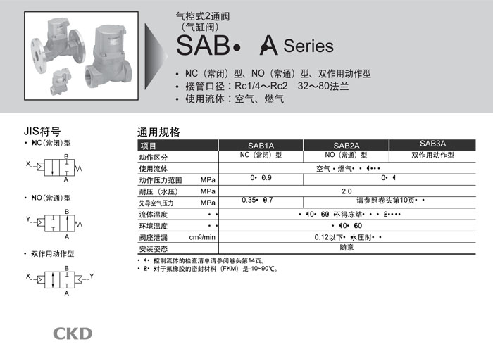 SAB3A-15A,SAB3A-20A,SAB3A-25A,SAB3A-32A,SAB3A-32F,SAB3A-40A,SAB3A-40F,SAB3A-50A,SAB3A-50F,SAB3A-65,CKD氣控式2通閥