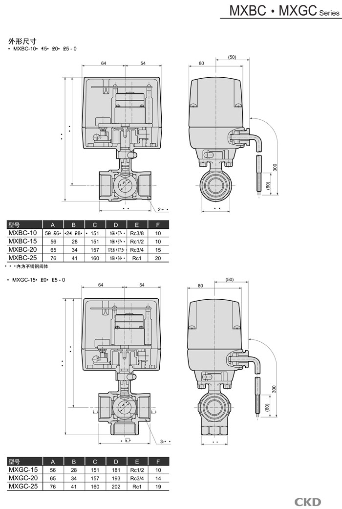 MXBC-10,MXBC-15,MXBC-20,MXBC-25,MXGC-15,MXGC-20,MXGC-25,MXBC-10-O-3,CKD電動(dòng)式球閥2·3通電磁閥
