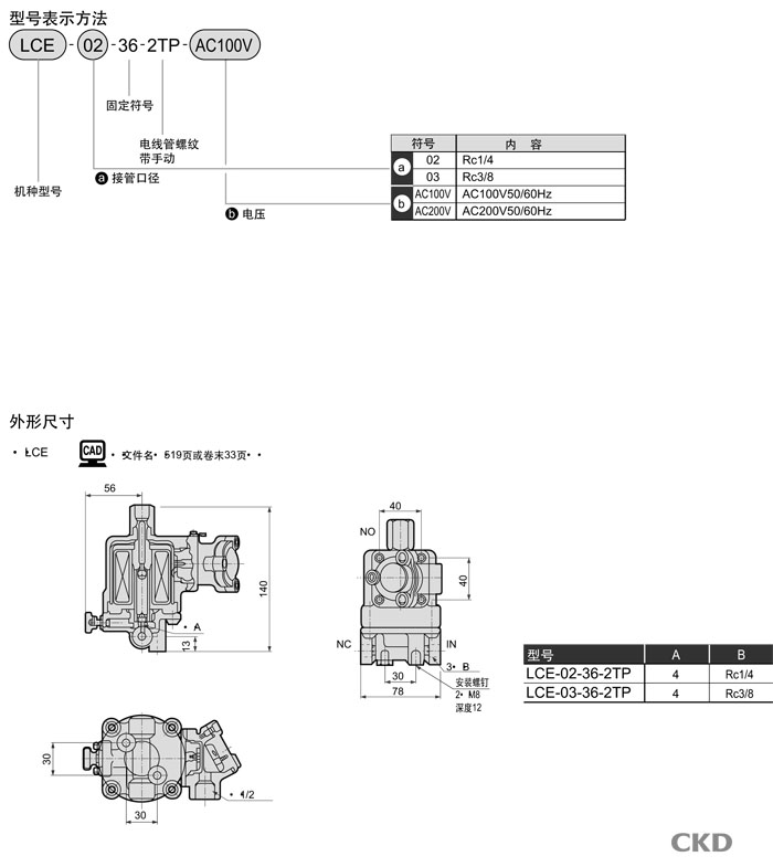LCE-02-36-2TP,LCE-03-36-2TP,CKD直動式3通電磁閥