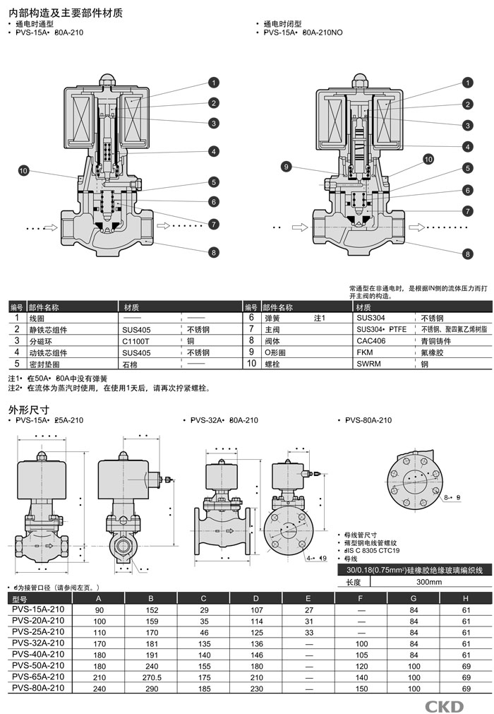 PVS-15A-210,PVS-20A-210,PVS-25A-210,PVS-32A-210,PVS-40A-210,PVS-50A-210,PVS-65A-210,PVS-80A-210,CKD先