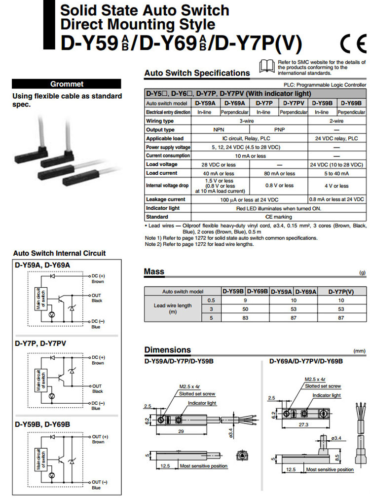 詳細(xì)信息 D-Y59A,D-Y69A,D-Y7P,D-Y7PV,D-Y59B,D-Y69B,SMC固態(tài)自動開關(guān)