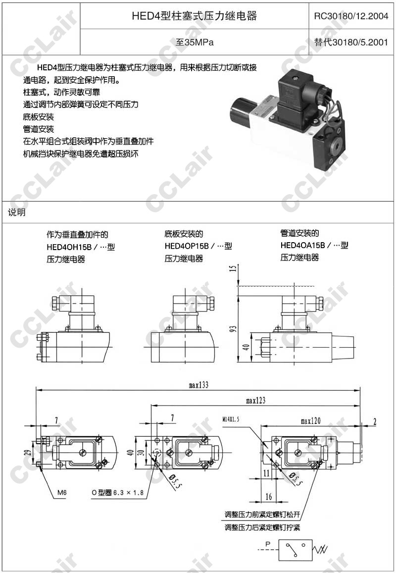 HED4OP15,HED4OA15,HED4OH15,huade柱塞式壓力繼電器
