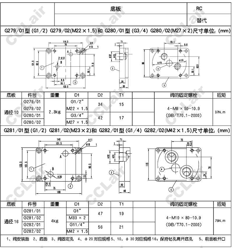 G279/01,G279/02,G280/01,G280/02,G281/01,G281/02,G282/01,G282/02,G282/02(M42*4.5),huade底板
