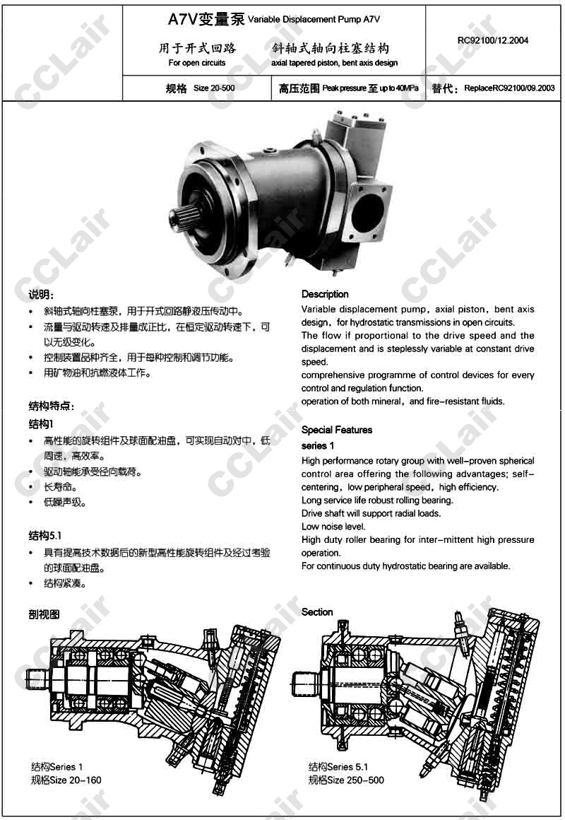 A7V500MA5.1LZGOO,A7V500MA5.1LPGOO,A7V500MA5.1LZGMO,A7V500MA5.1LPGMO,CCLair A7V20EP1RZFOO,