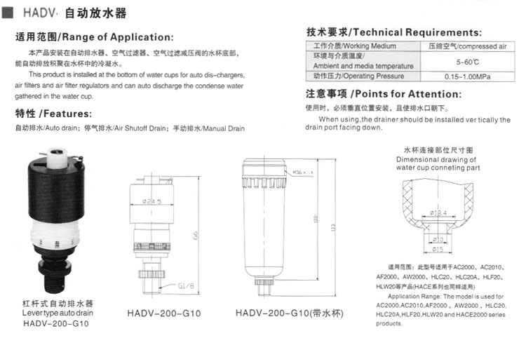 HADV-200-G10,HADV-300-GW12,HADV-400-GW12,杠桿式自動排水器