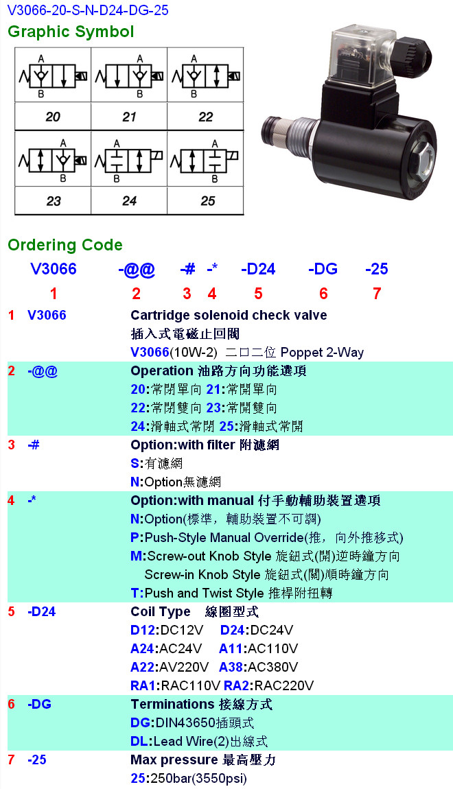 V3066-20,V3066-21,V3066-22,V3066-23,V3066-24,V3066-25,HYDROMAX插入式電磁止回閥