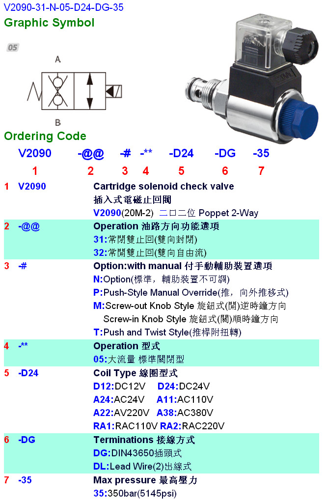 型號: V2090-31-N-05-D24-DG-35,V2090-31-N,V2090-31-P,V2090-31-M,V2090-31-T