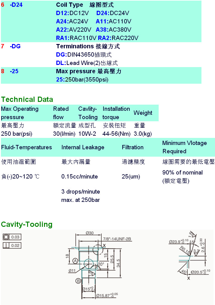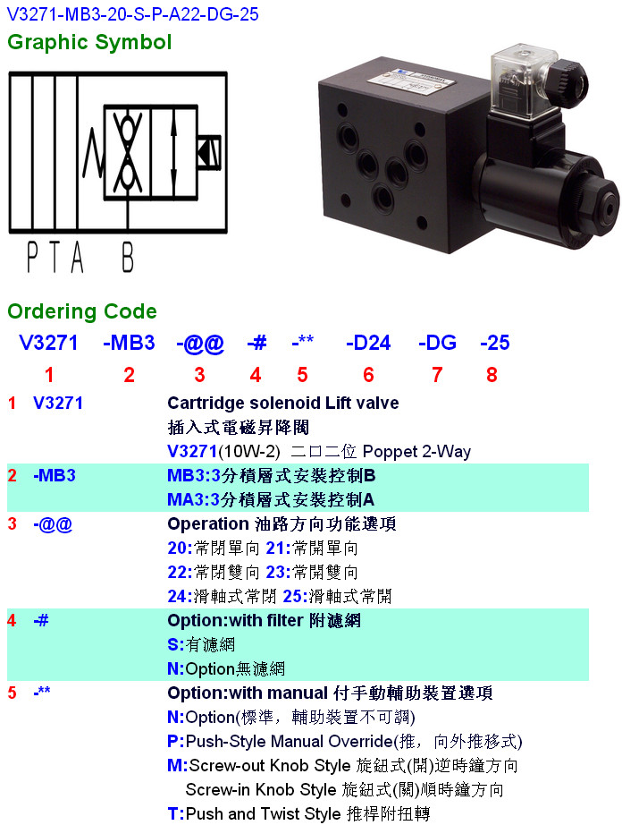 V3271-MA3-20,V3271-MA3-21,V3271-MA3-22,V3271-MB3-23,V3271-MB3-24,V3271-MB3-20-S-P-A22-DG-25,HYDROMAX插入式電磁升降閥