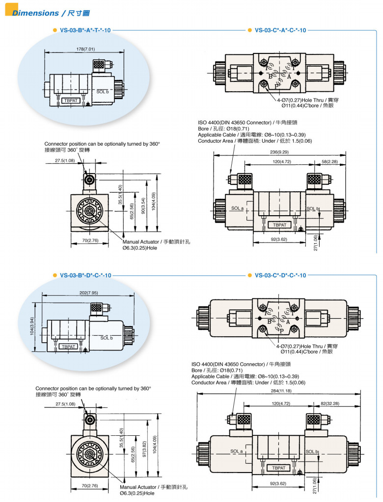 VS-03-C2-A1-T-U-10,VS-03-C2-A2-T-U-10,VS-03-C2-A3-T-U-10,VS-03-C2-A4-T-U-10,HYDROMAX電磁方向控制閥