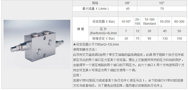 詳細(xì)信息 HYVMPDI 3/8",HYVMPDI 1/2",雙向交叉溢流閥