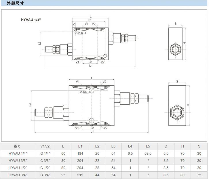 詳細(xì)信息 HYVAU 1/4",HYVAU 3/8",HYVAU 1/2",HYVAU 3/4",雙向交叉溢流閥
