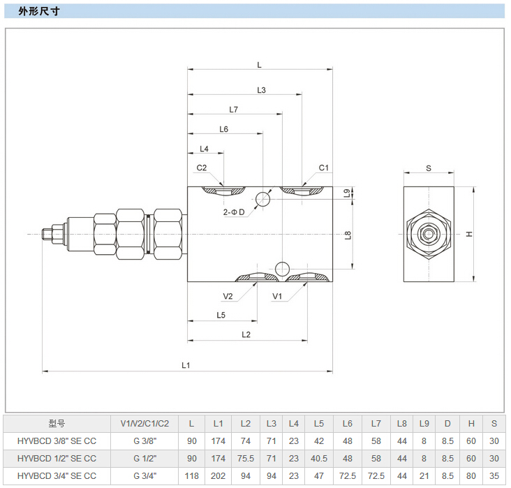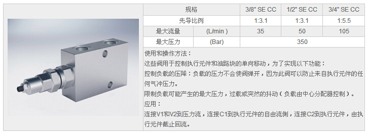 詳細信息 HYVBCD 3/8" SE CC,HYVBCD 1/2" SE CC,HYVBCD 3/4" SE CC,中心閉合的單向平衡閥