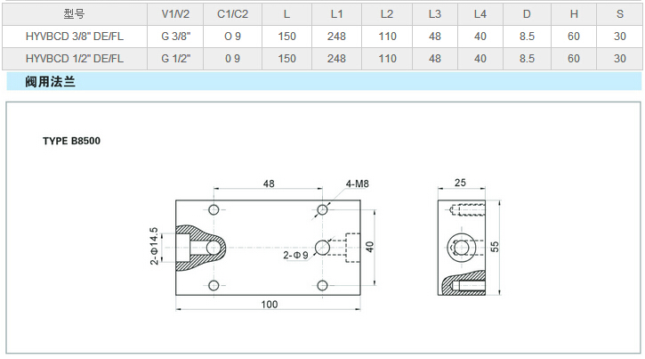 詳細(xì)信息 HYVBCD 3/8" DE/FL,HYVBCD 1/2" DE/FL,法蘭式雙向先導(dǎo)疊加閥