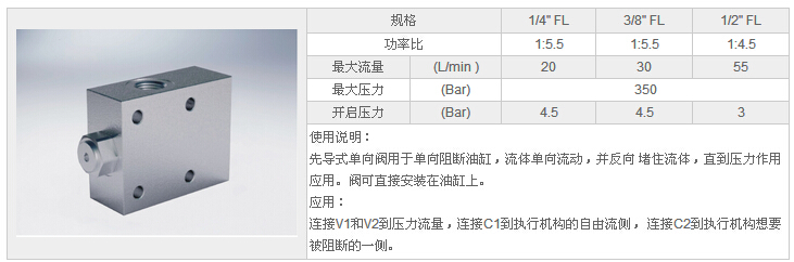 詳細(xì)信息 HYVBPSE 1/4" FL,HYVBPSE 3/8" FL,HYVBPSE 1/2" FL,單先導(dǎo)式單向閥