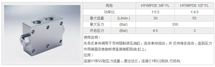 詳細(xì)信息 HYVBPDE 3/8" FL,HYVBPDE 1/2" FL,先導(dǎo)式雙單向閥