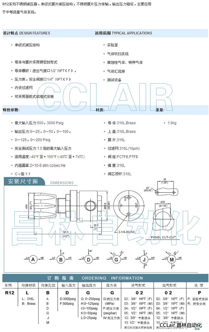 R12L,R12B,不銹鋼減壓器