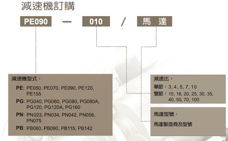 PE050-03,PE070-04,PE090-05,PE120-07,PE155-010,伺服專用減速機