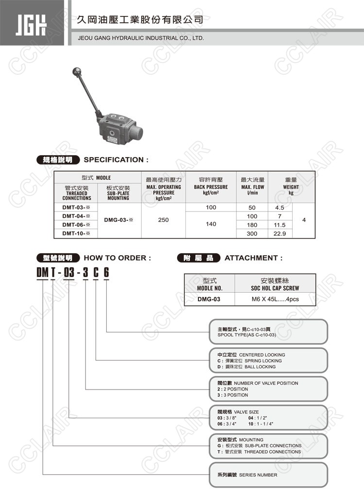 DMT-03-2-C-6,DMT-03-2-D-6,DMT-03-3-C-6,DMT-10-2-D-6,DMT-10-3-C-6,DMT-10-3-D-6,DMG-03-2-C-6,DMG-03-2-D-6,DMG-03-3-C-6,DMG-06-3-D-6,DMG-10- 2-C-6,DMG-10-2-D-6,DMG-10-3-C-6,DMG-10-3-D-6,JeouGang臺(tái)灣久岡,手動(dòng)換向閥