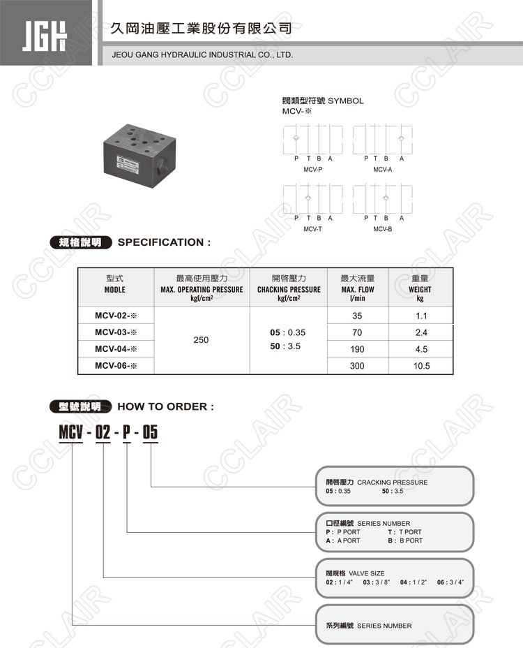 JeouGang臺(tái)灣久岡,疊加式單向閥MCV-02-P-05,MCV-02-P-50,MCV-02-T-05,MCV-03-A-50,MCV-03-B-05,MCV-03-B-50,MCV-04-P-05,MCV-04-P-50,MCV-04-T-05,MCV-04-T-50,MCV-06-T- 05,MCV-06-T-50,MCV-06-A-05,MCV-06-A-50,MCV-06-B-05,MCV-06-B-50