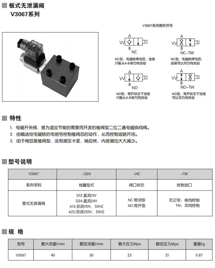 型號: V3067-D24,V3067-D12,V3067-A15,V3067-A25,V3067-D24-NC-TW,V3067-A15-NO,管式無泄漏閥