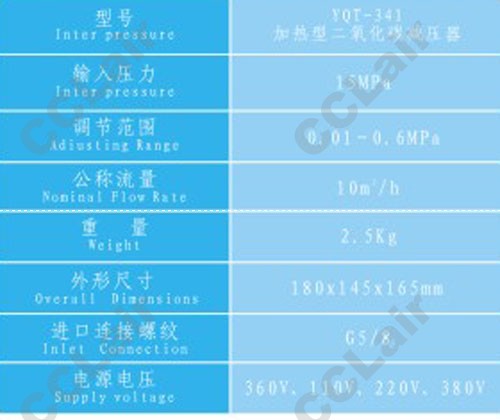 型號(hào): YQT-341,加熱型二氧化碳減壓器,CCLair