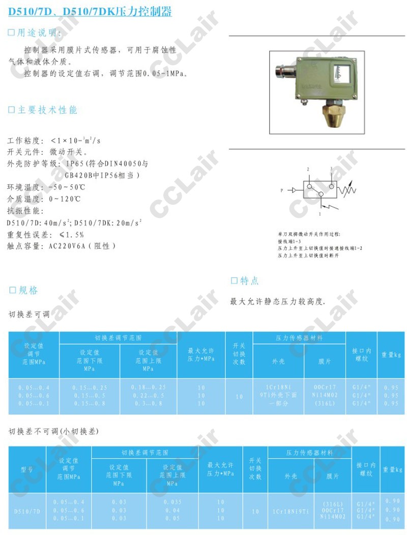 D510/7D,D510/7DK,壓力控制器,CCLair