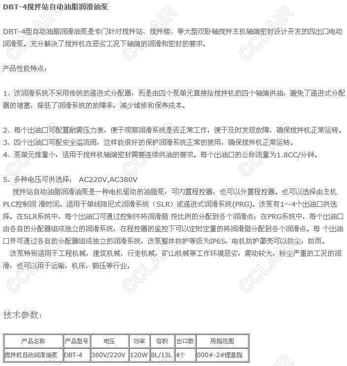 詳細(xì)信息 DBT-4,攪拌站自動(dòng)油脂潤(rùn)滑油泵
