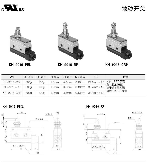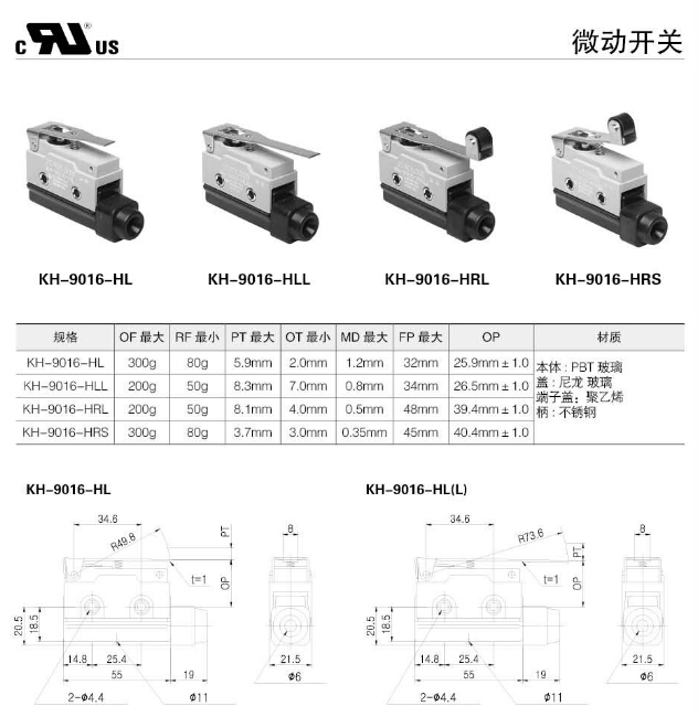 KH-9016-PBL,KH-9016-RP,KH-9016-CRP,KH-9016-HL,KH-9016-HLL,KH-9016-HRL,KH-9016-HRS,Koino微動(dòng)開關(guān)