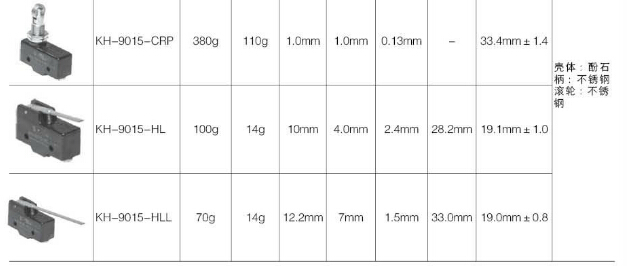 KH-9015-PBF,KH-9015-RP,KH-9015-PBL,KH-9015-PBS,KH-9015-HP,KH-9015-CRP,KH-9015-HL,Koino微動(dòng)開(kāi)關(guān)