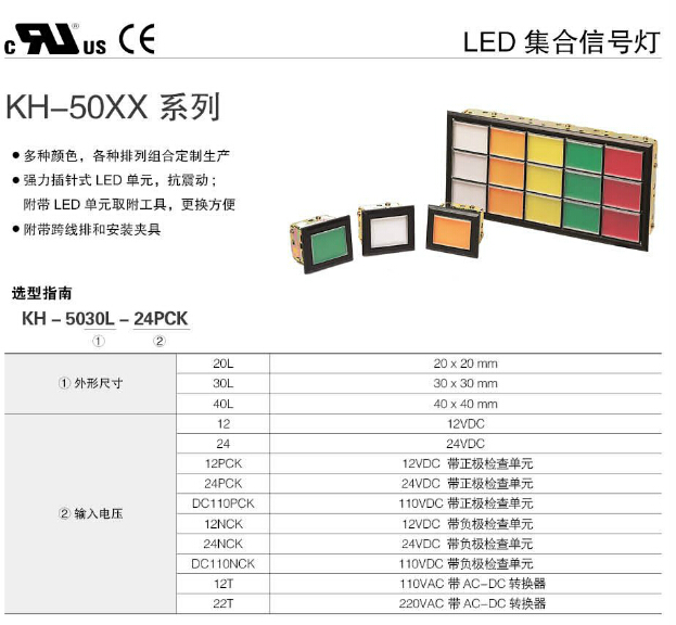 KH-5020L-12,KH-5030L-12,KH-5040L-12,KH-5020L-24,KH-5030L-24,KH-5040L-24,KH-5030L-24PCK,Koino LED集合信號(hào)