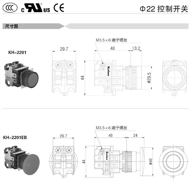 詳細(xì)信息 KH-2201,KH-2201EB,KH-2201ER,KH-2201S,KoinoΦ22控制開關(guān)
