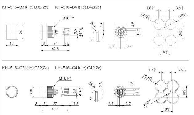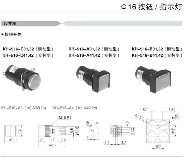 KH-516-A11,KH-516-B11,KH-516-C11,KH-516-D31,KH-516-A12,KH-516-B12,KH-516-C12,KoinoΦ16按鈕燈
