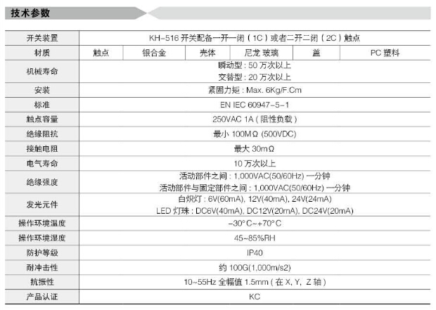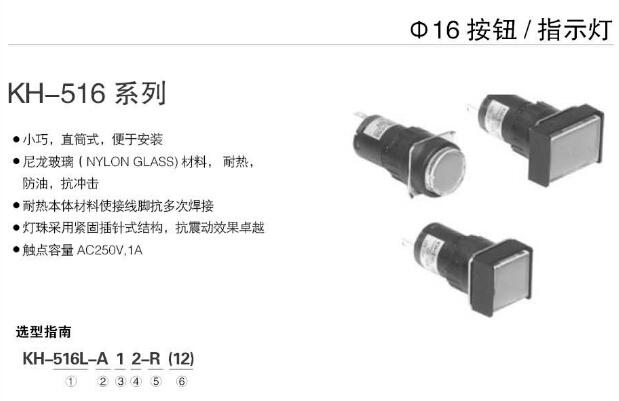 型號(hào): KH-516-A00,KH-516-B00,KH-516-C00,KH-516L-A00,KH-516L-B00,KH-516L-C00,KoinoΦ16指示燈