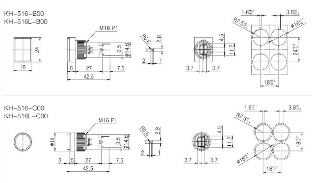 KH-516-A00,KH-516-B00,KH-516-C00,KH-516L-A00,KH-516L-B00,KH-516L-C00,KoinoΦ16指示燈