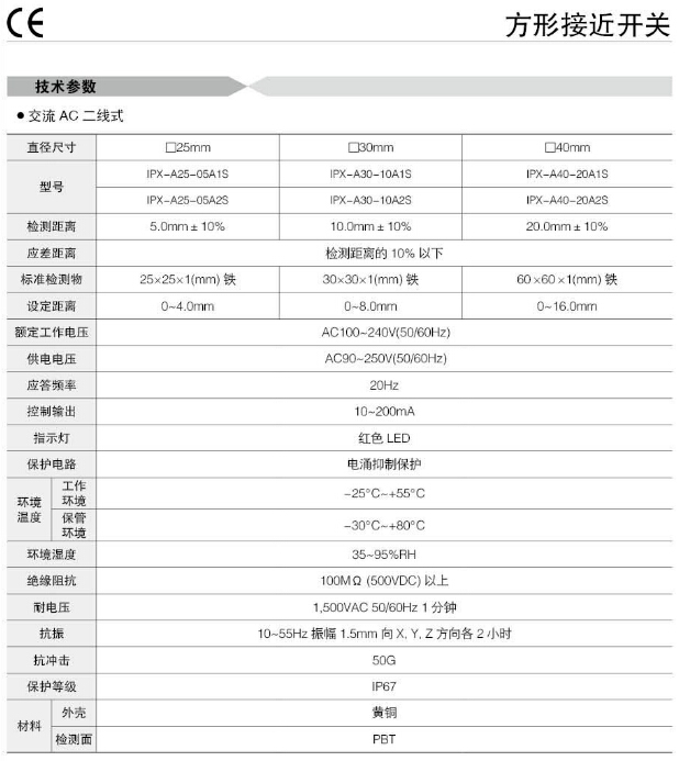 IPX-2D25-05A1S,IPX-2D30-10A1S,IPX-2D40-20A1S,IPX-A25-05A1S,IPX-A30-10A1S,IPX-A40-20A1S,Koino方形接近開關(guān)