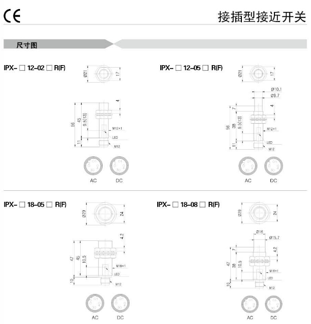 IPX-2D30-10A1R,IPX-A12-02A1R,IPX-A18-05A1R,IPX-A30-15A1RN,Koino接插型接近開關(guān)
