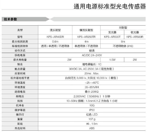 KPS-AR500T,KPS-AR500R,KPS-AR250TR,KPS-AR40DR,Koino光電傳感器