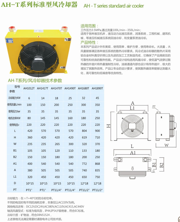 AH1012T,AH1417T,AH1470T,AH1680T,AH1890T,標(biāo)準(zhǔn)型風(fēng)冷卻器