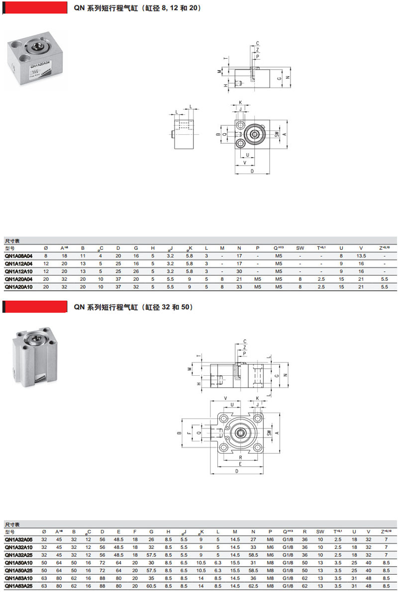 QN1A08A4,QN1A12A4,QN1A20A10,QN1A32A10,QN1A32A25,camozzi短行程氣缸