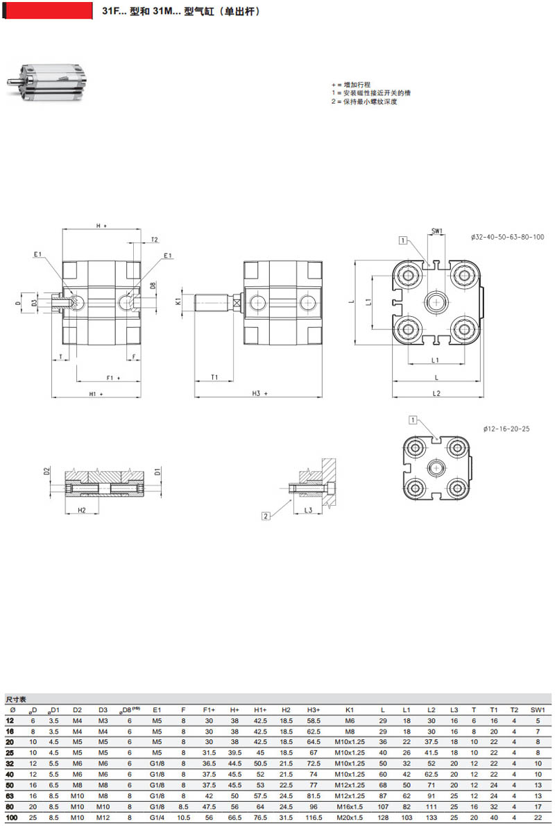 31M1A050A020,31F1A032A020,31R4A050A080,31M2A020A010,camozzi氣缸