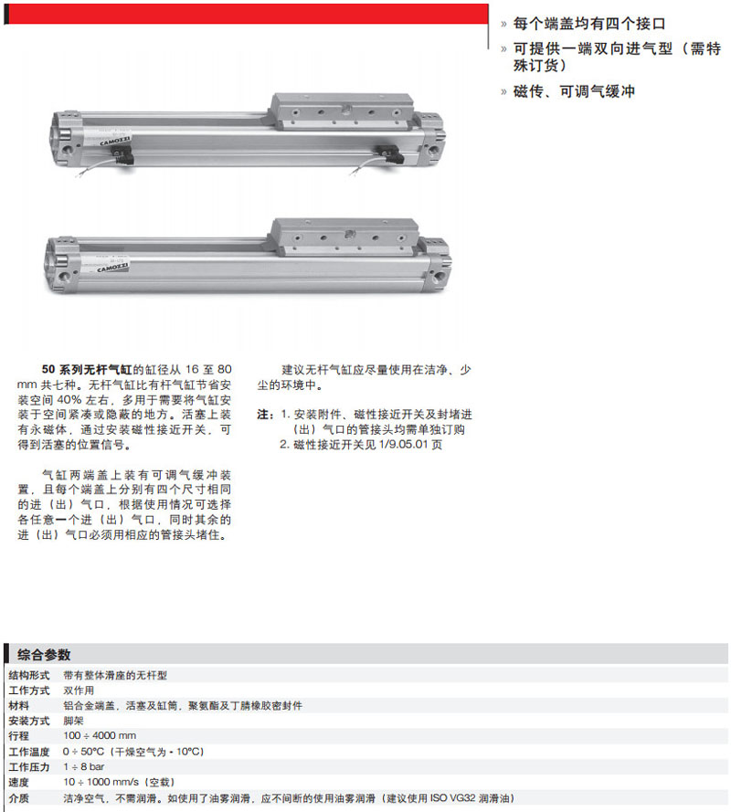 詳細(xì)信息 50M2P16A0500,50M2P25A0500,50M2U32A0500,50M2U40A0500,50M2P50A0500,camozzi氣缸