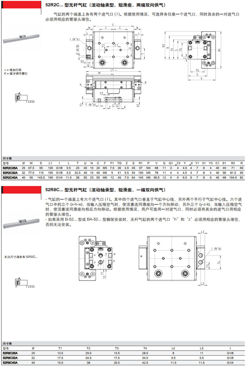 2M2P25A0500,52G2P32A0500,52R2C40A0500,52G8C50A0500,52M8C25A0500,camozzi氣缸