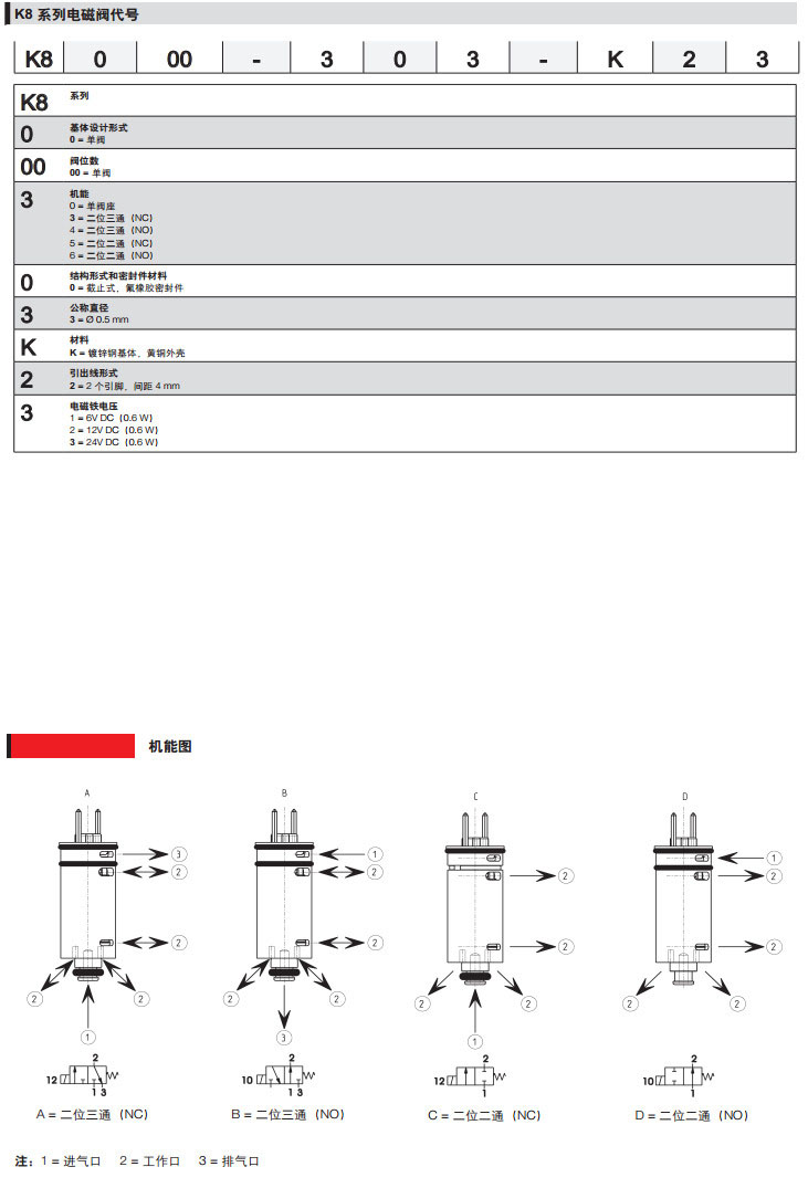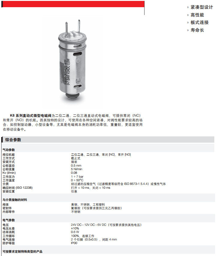 詳細(xì)信息 K8000-003-K21,K8000-303-K22,K8000-403-K23,K8000-503-K21,camozzi直動(dòng)式微型電磁閥