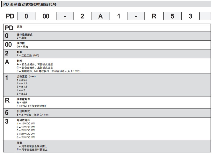 產(chǎn)品: 瀏覽次數(shù):558PD000-2A1-R51,PD000-2A5-F52,PD000-2E1-R53,camozzi直動式微型電磁閥