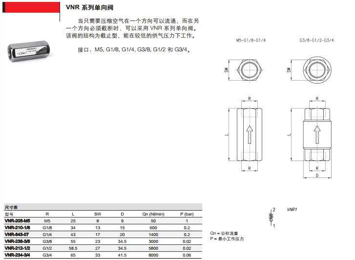 VNR-205-M5,VNR-210-1/8,VNR-843-07,VNR-238-3/8,camozzi單向閥的詳細(xì)介紹