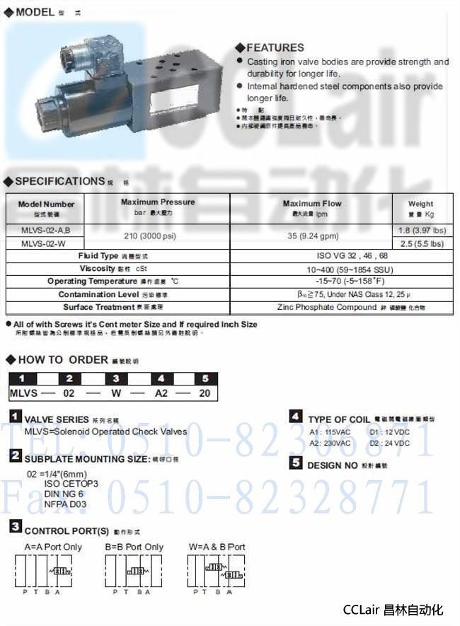產(chǎn)品: 瀏覽次數(shù):888MLVS-02-A,MLVS-02-B,MLVS-02-W,電磁止逆閥,