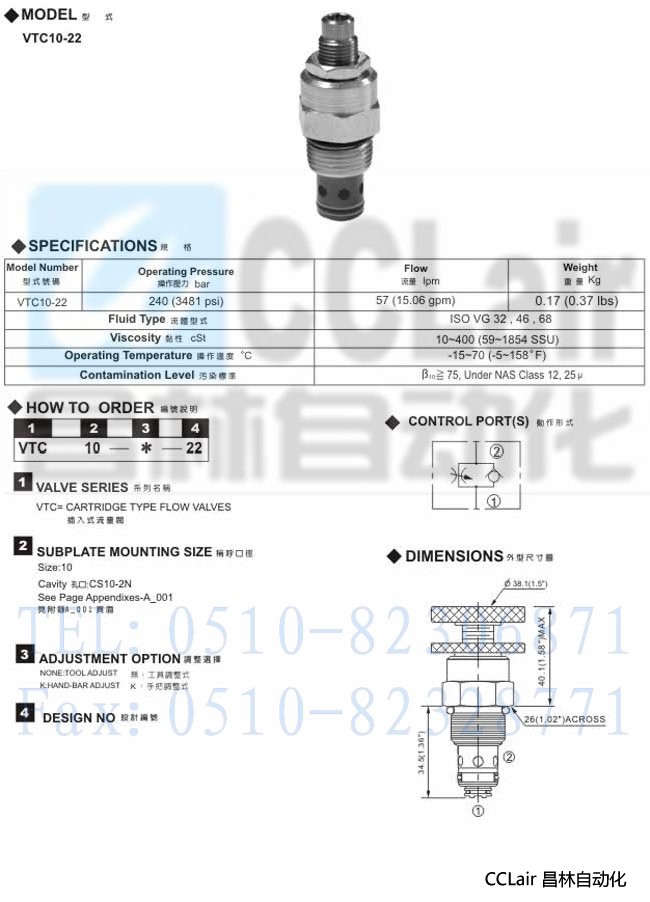 產(chǎn)品: 瀏覽次數(shù):665VTC-10-22,插入式流量閥,