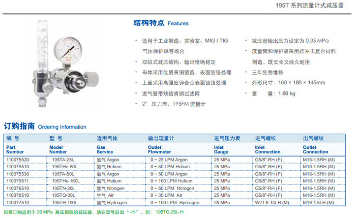 195TA-25L,195THe-80L,195TA-50L,195THe-160L,195TN-30L,195TQ-30L,195TH-100L,流量計式減壓器 詳細信息 195TA-25L,195THe-80L,195TA-50L,195THe-160L,195TN-30L,195TQ-30L,195TH-100L,流量計式減壓器