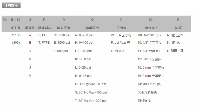 型號: R11S3A,R11S3B,R11S3D,R11S3G,R11S3J,R11S3M,R11S3AP-DGW,R11S3BP-DGW,小流量減壓器