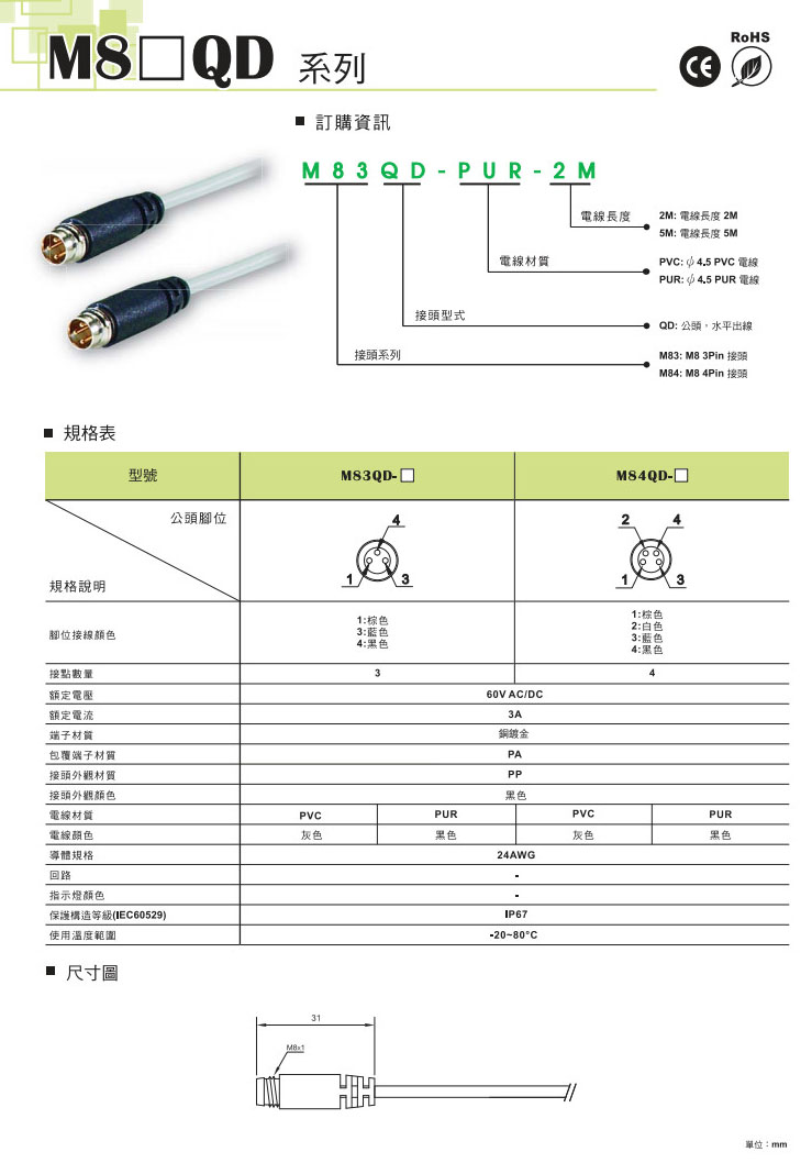 M83QD-PUR-2M,M83QD-PUR-5M,M83QD-PVC-2M,M83QD-PVC-5M,M84QD-PUR-2M,M84QD-PUR-5M,M84QD-PVC-2M,KIDA導(dǎo)線接頭